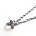 小さなリング上にクロスデザインをあしらったシルバーネックレス。燻し加工を施すことで、味わい深いアンティーク調の表情を引き出しました。日常のスタイルにさりげなく溶け込み、性別を問わず幅広くお使いいただける一品です。ギフトやペアにもおすすめ。
