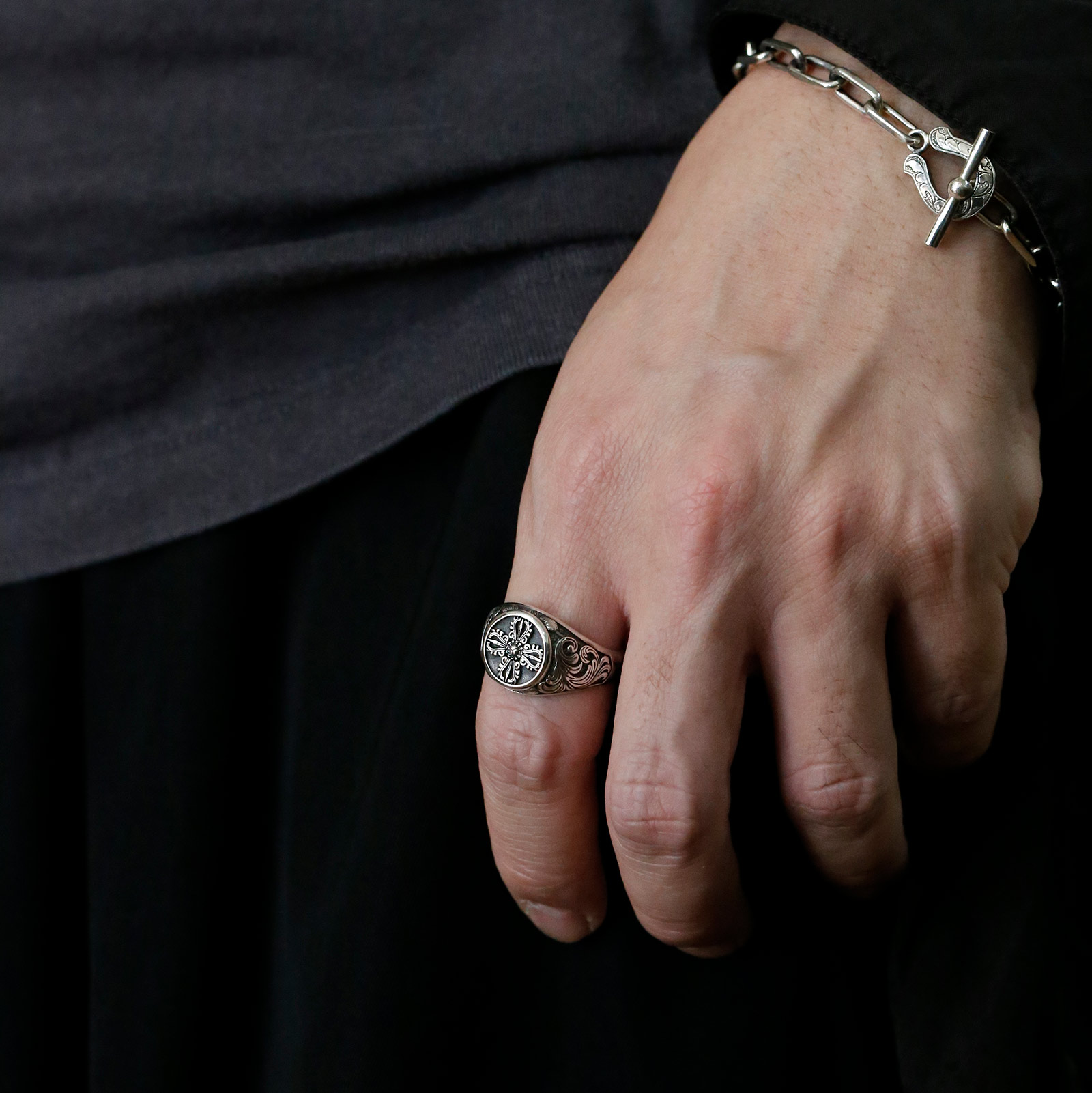 ディープカーヴィングシグネットリング - ダブルドージェ